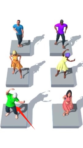 2、点击人物跳舞,可能用于解锁特殊关卡,利用每日登录奖励获取免费角色与加速解锁。