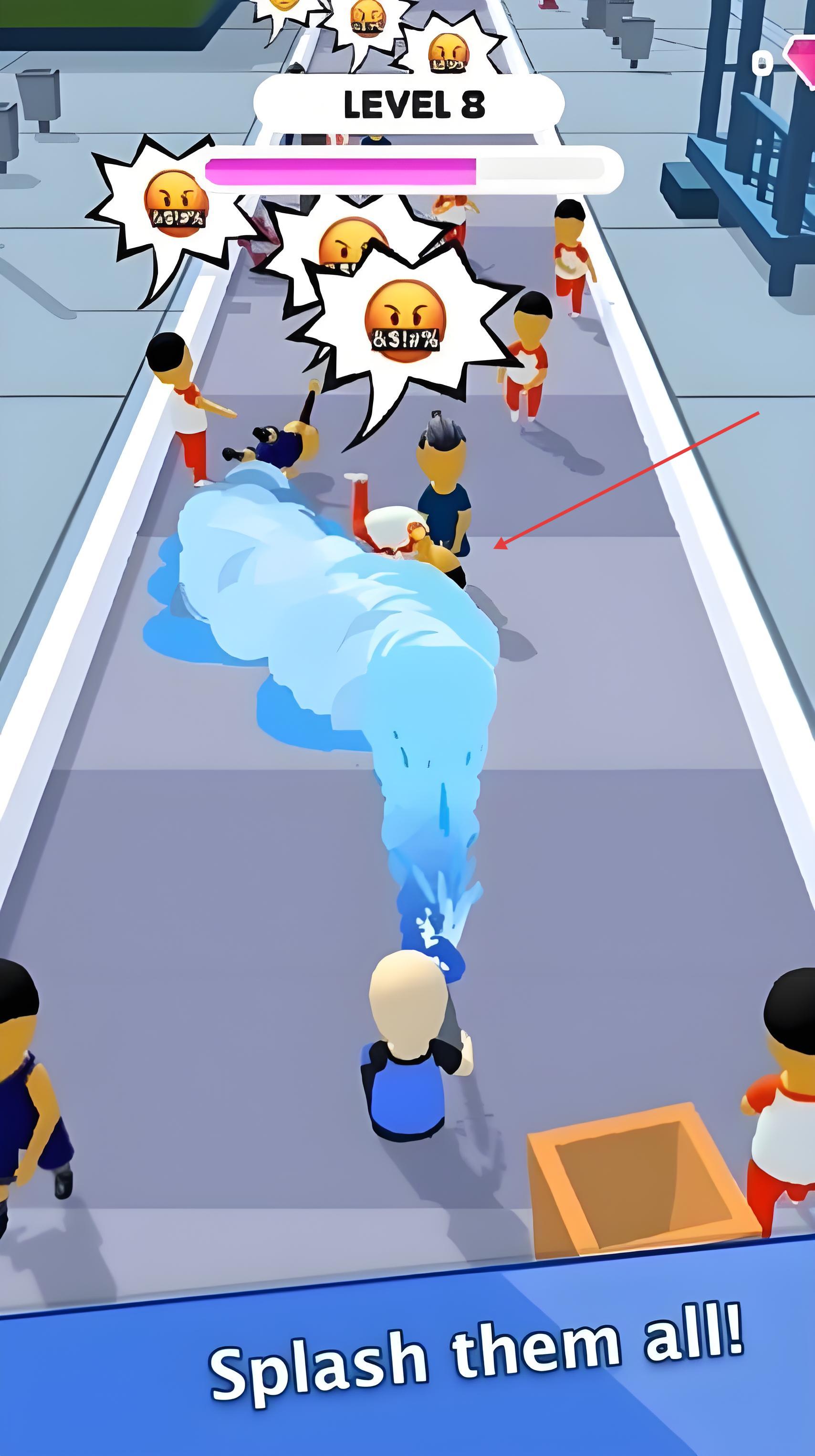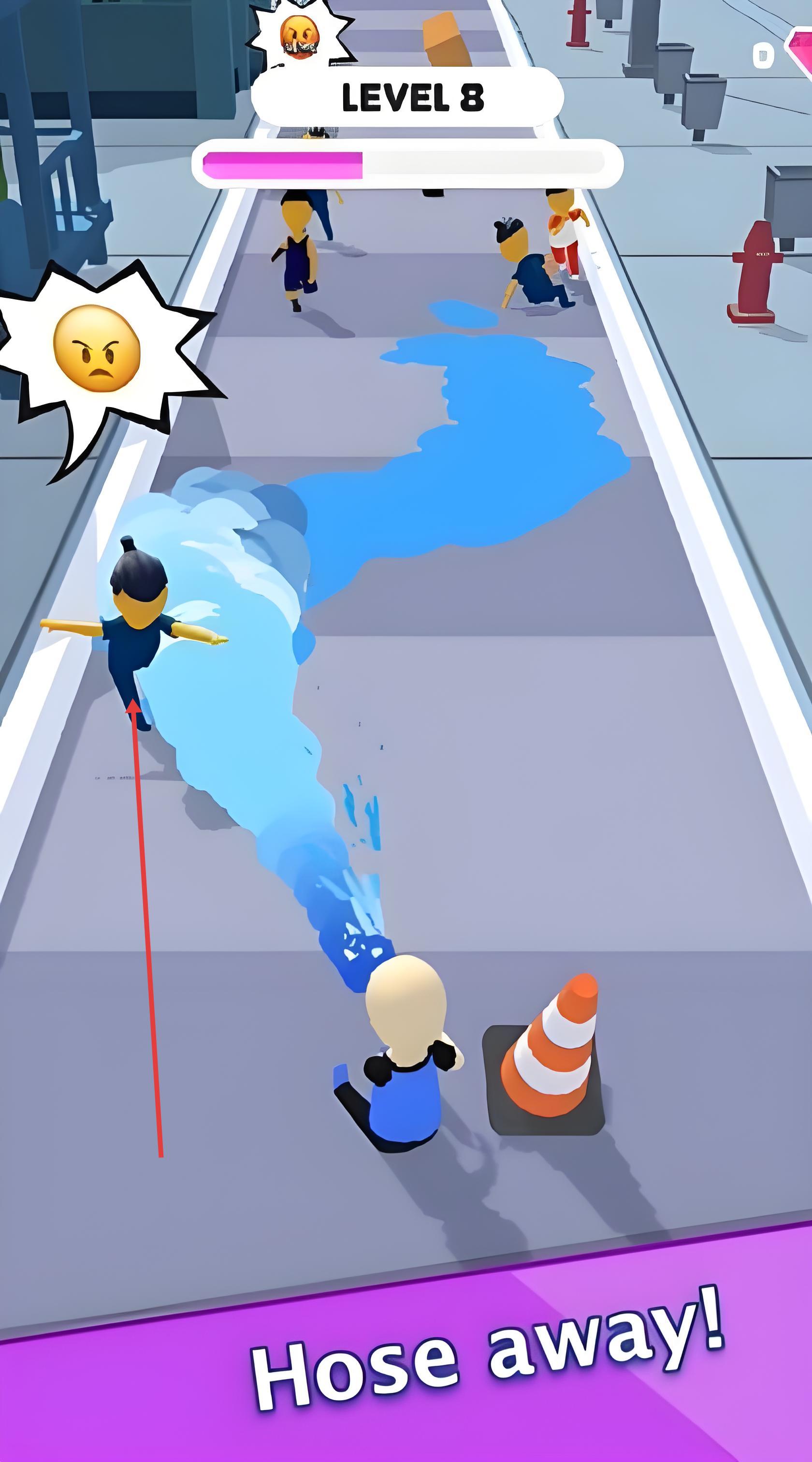 1、进入游戏后滑动屏幕控制小人左右移动,点击屏幕喷射水流,击碎前方果冻墙等可溶解障碍。