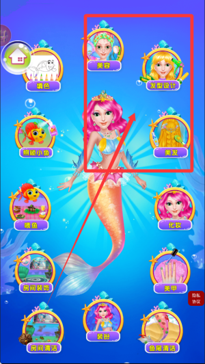 1、玩家需要先为美人鱼公主进行面部清洁和护理,使用各种美容道具打造光滑细腻的肌肤基础。