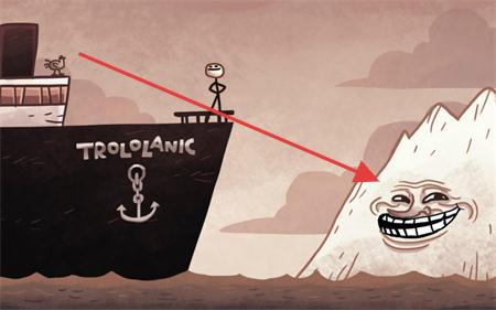 1、进入轮船主题关卡,看到印有“TROLOLANTIC”的黑色巨轮后,点击右侧长着搞怪笑脸的冰山,触发超乎想象的无厘头互动事件,比如冰山突然“搞怪移位”。