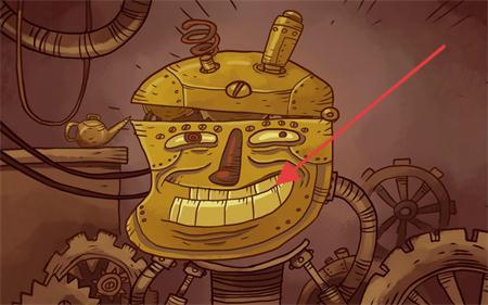 2、在机械装置场景中,面对头顶带弹簧、面部表情戏谑的金色机械头,精准点击其面部牙齿、眼睛等关键位置,触发机械结构奇妙反应,像齿轮疯狂转动。