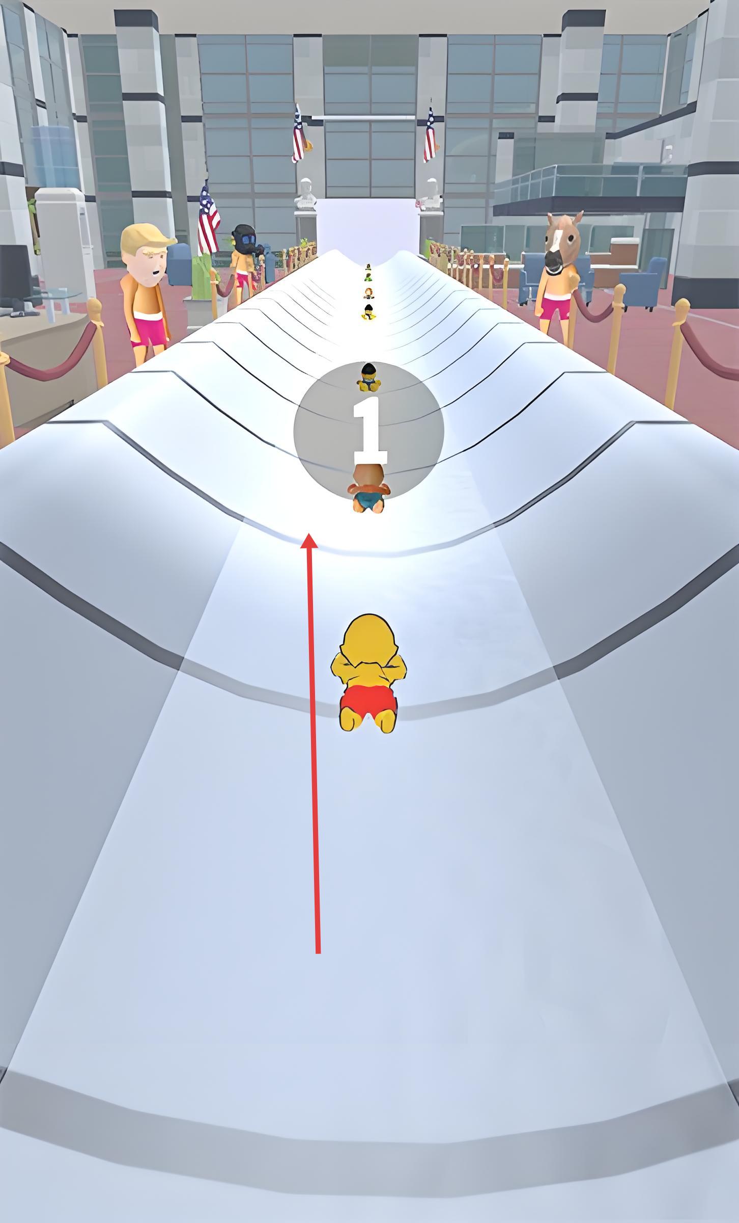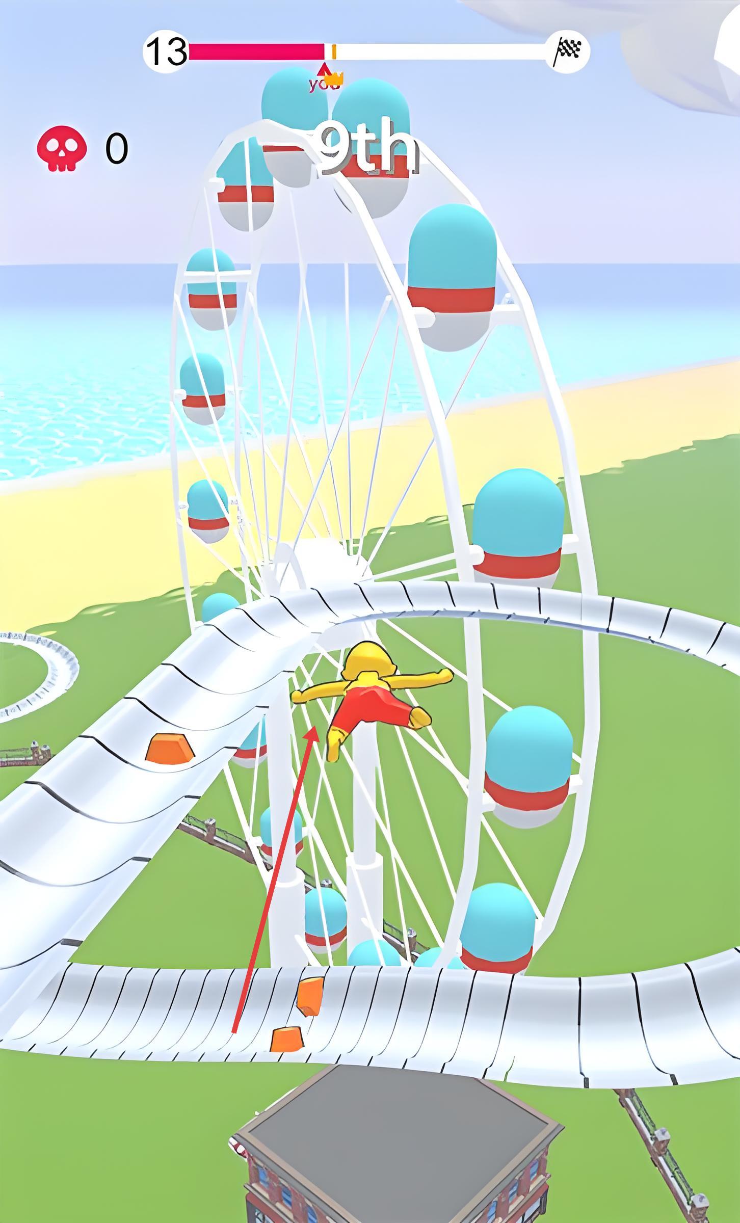 2、魔性物理互动:橡皮人碰撞时会触发夸张的弹性形变,飞跃滑道间隙时四肢呈“大字型”摆动,被香蕉皮滑倒时会旋转360度,物理反馈充满喜剧效果,适合休闲解压。