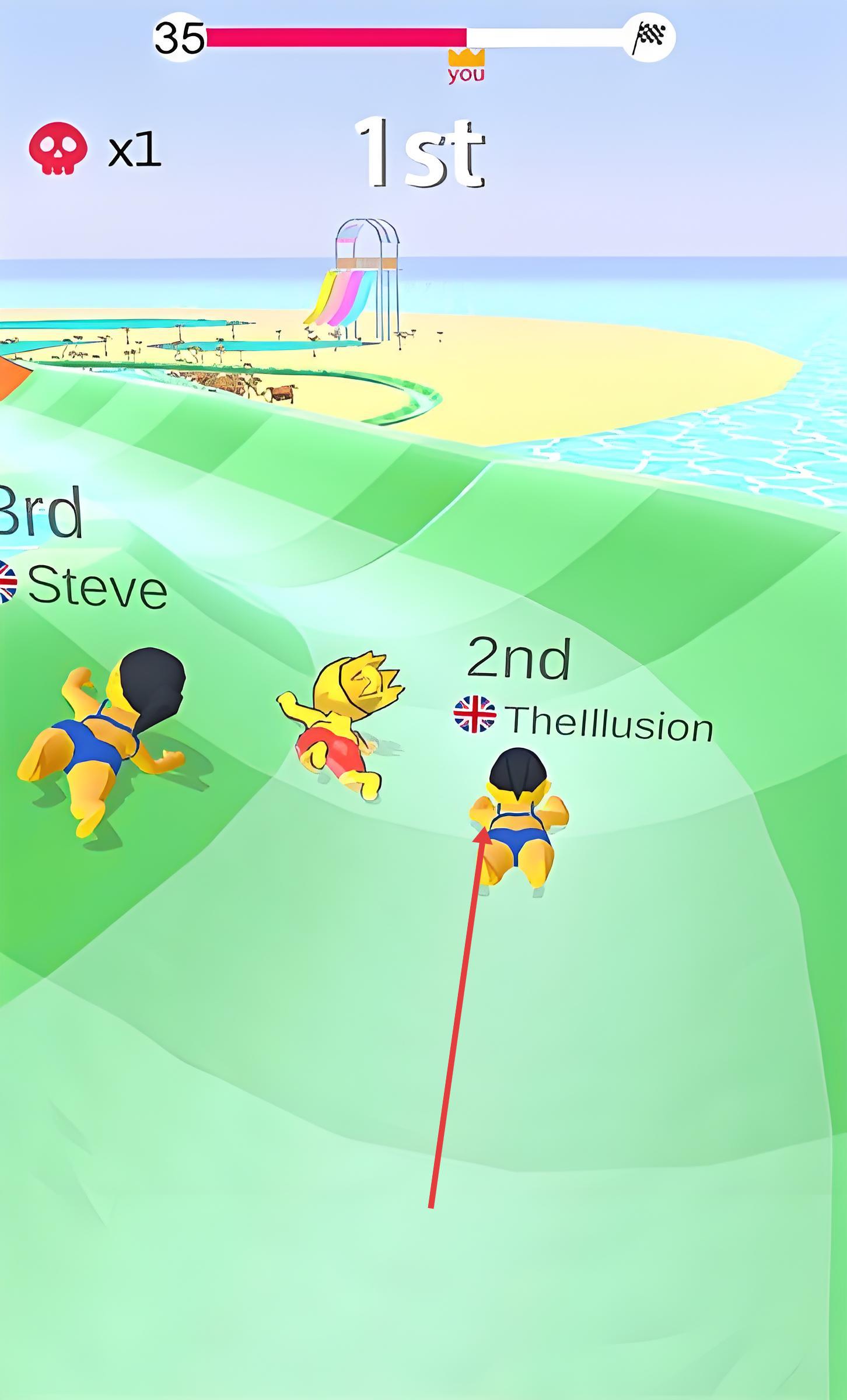 3、率先抵达终点线的玩家获得冠军,系统根据排名结算金币奖励与经验值,积累的金币可解锁“鲨鱼橡皮人”等限定皮肤,经验值提升后开放“火山岩浆滑道”等进阶场景。