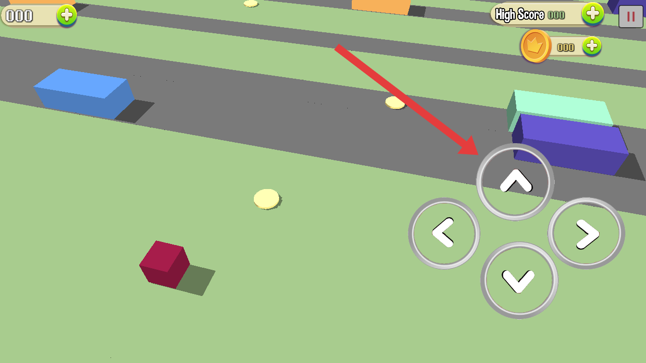 1、四向箭头控跳跃:通过箭头按钮在四个方向上控制果冻跳跃,操作直观且灵活,向下、向左、向右的精准控制是躲避车辆的关键,简单却需快速反应。