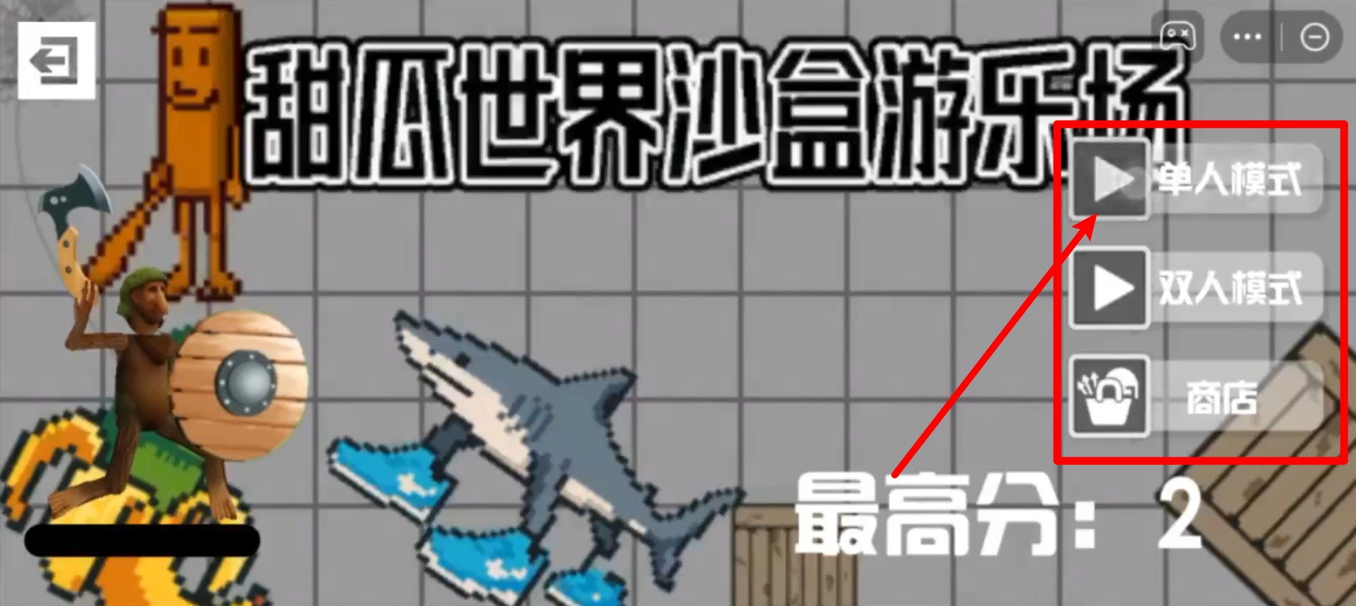 1.点击首页右侧“单人模式”按钮即可开始挑战,也可切换为双人模式或前往商店浏览皮肤和道具内容。