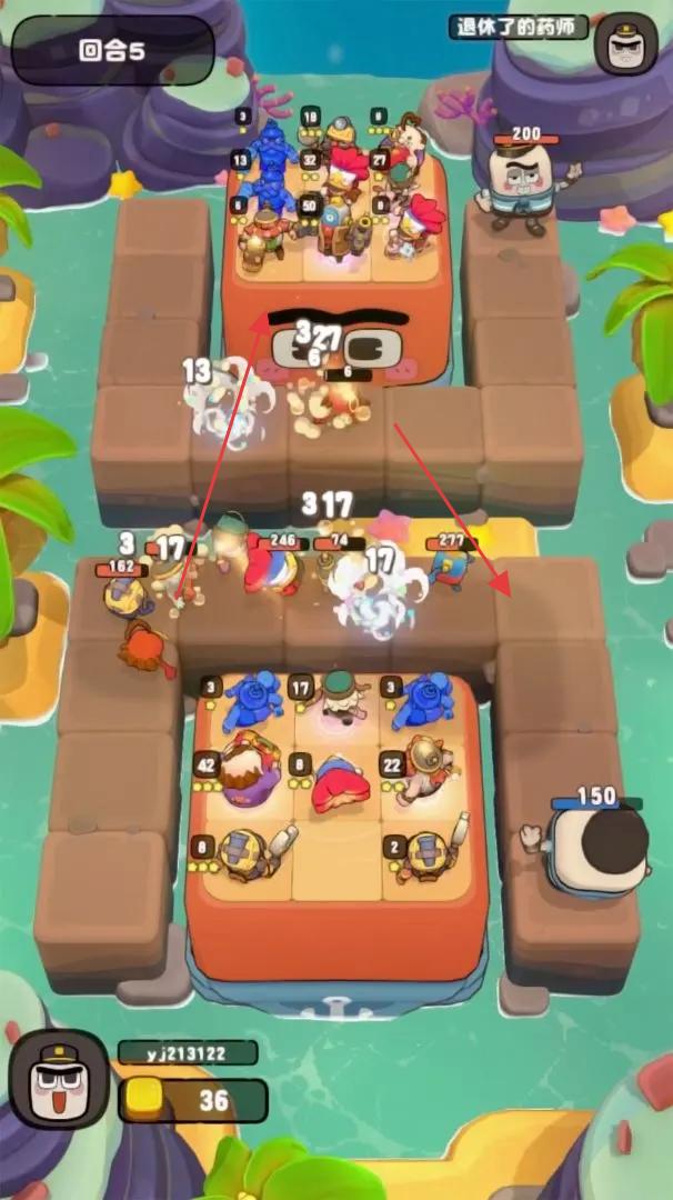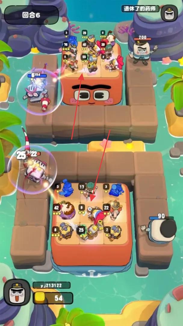 2、回合战斗中(回合5/6),消耗金币部署角色到战场,利用技能、属性,对抗敌方单位。