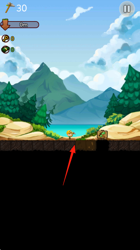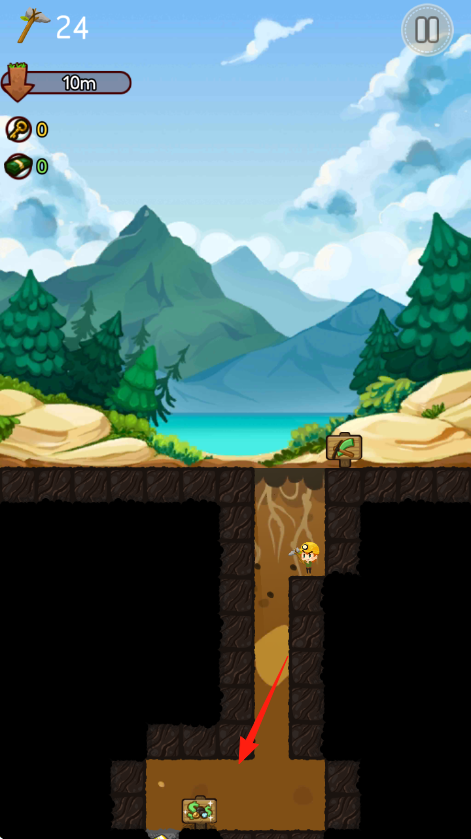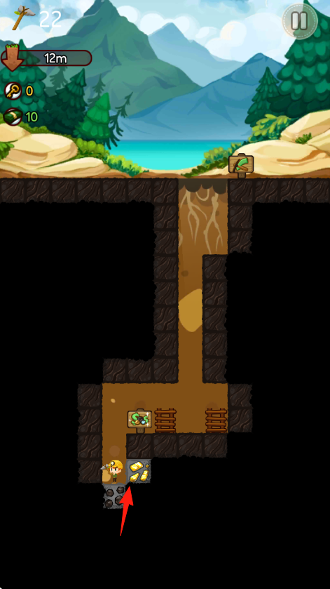 1、点击地面,控制角色开始向下挖掘,利用工具(斧头)破除土层,探索地底。