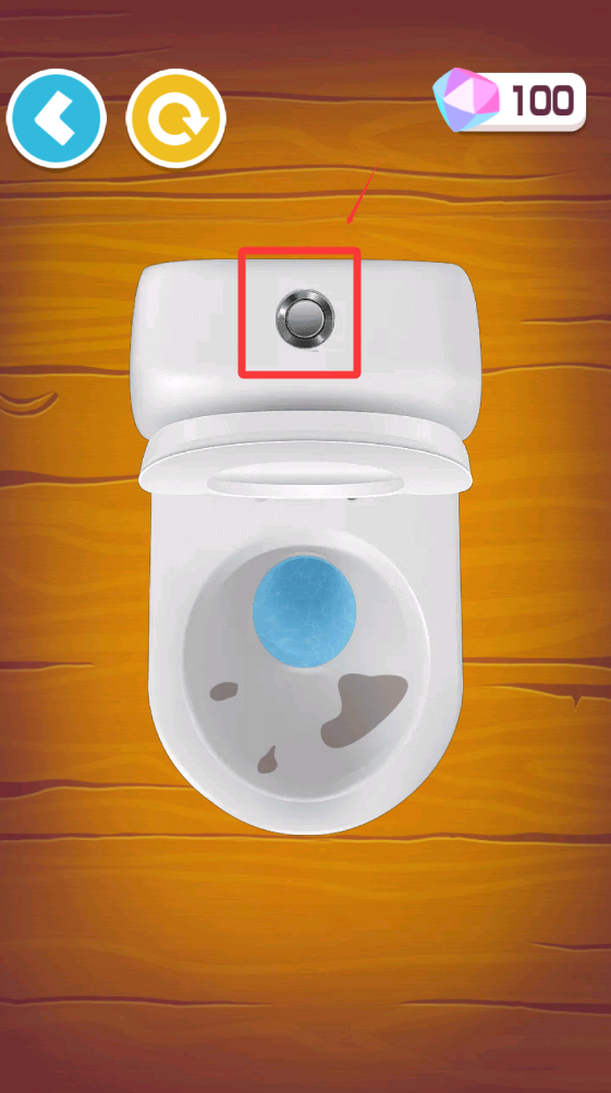 3、按住屏幕中的冲水按钮不放,随着进度条充满将触发强力冲洗动画,所有污渍瞬间消失。