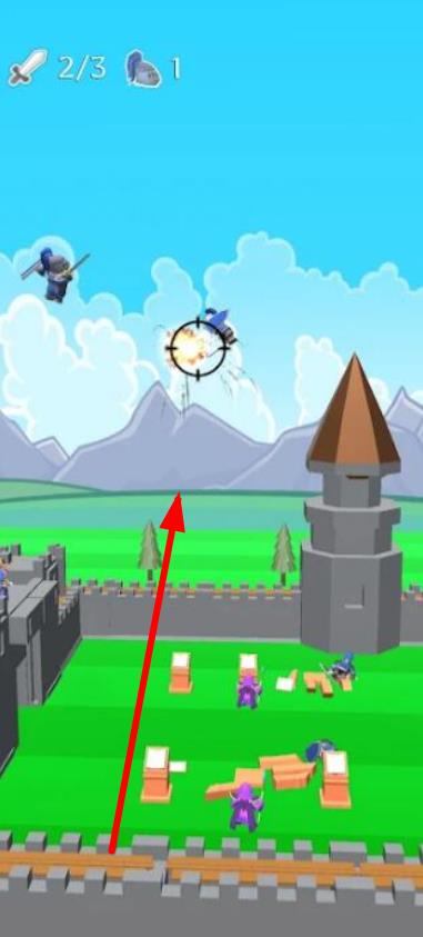 1、进入局内后选择魔法类型,拖动屏幕瞄准城堡防御塔,释放火球、冰锥等魔法破坏敌方工事。