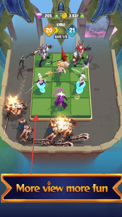 2、英雄合成与派遣:使用赚取的硬币解锁基础英雄,通过合并相同英雄合成更高级角色,在战斗中派遣英雄至关键位置,利用其特殊技能对敌人造成大规模伤害。
