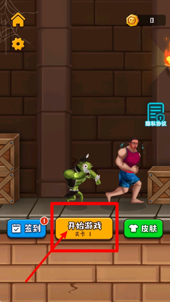 1.点击主页面中央的“开始游戏”按钮进入关卡,火柴人将自动前进,玩家需及时操作陷阱确保安全通关。