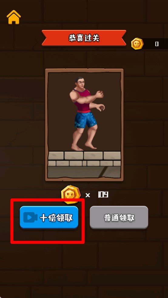 3.通关后可选择普通领取或观看广告领取十倍金币奖励,选择蓝色按钮能加速解锁更多角色和道具内容。
