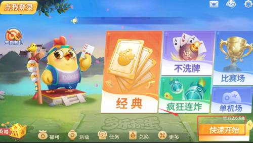 3、主界面选择快速开始选项,系统将自动匹配AI对手进行斗地主对局。