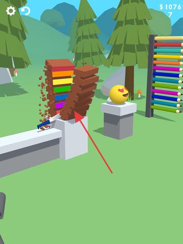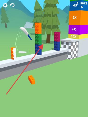 3、使刀具撞击带倍数标识(如【10x】【2X】等)的彩色积木塔,借助倍数效果,大量得分,助力通关进程。