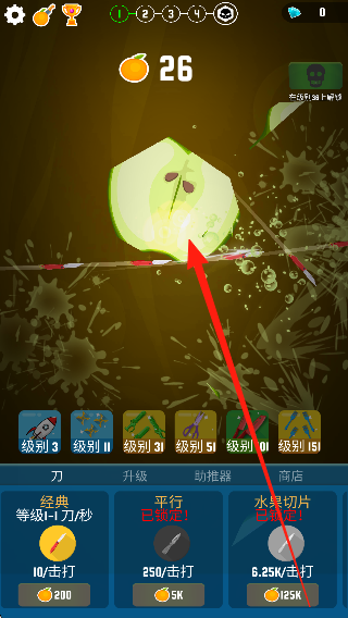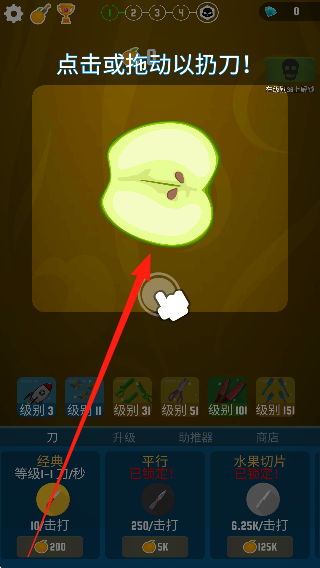 1、基础操作体系:点击屏幕控制飞刀力度,滑动屏幕调整角度,长按屏幕蓄力投掷,通过组合操作完成复杂切割任务,操作简单直观,让玩家专注策略规划。
