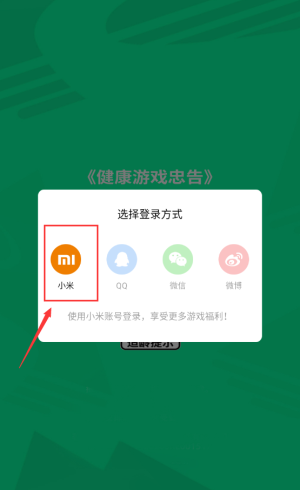 1、选择小米图标,使用账号登录游戏。