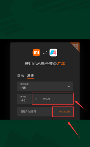 2、输入手机号,点击获取验证码按钮。