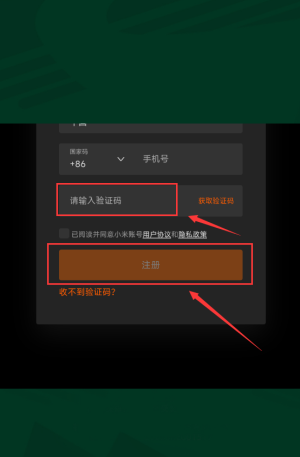 3、填写验证码,勾选协议完成注册。