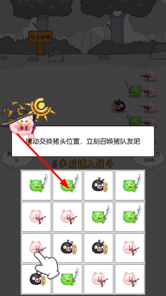 1、进入局内后通过合成相同等级的猪头来升级兵种,组建初始猪猪军团,准备迎接对战挑战。