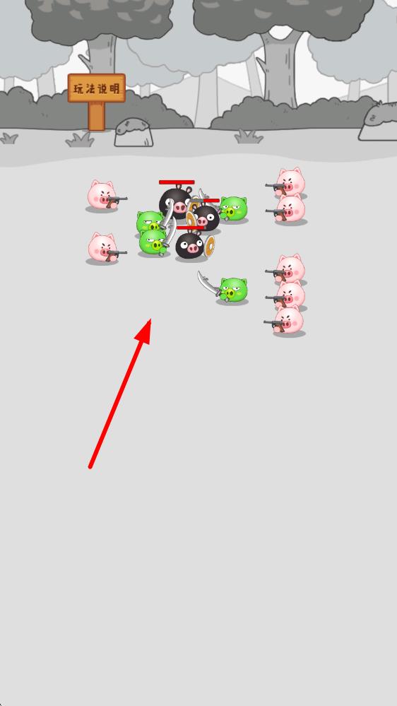 2、关卡中操控猪猪军团与对手展开PK,通过点击屏幕释放技能,利用不同等级猪头的特性赢得战斗。
