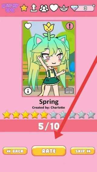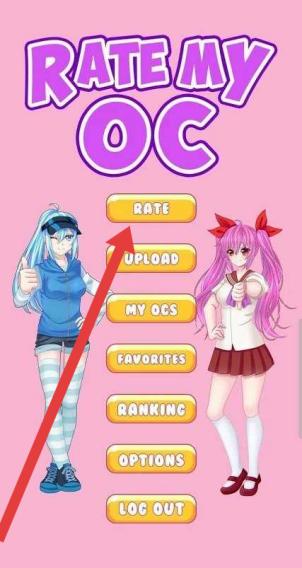 2、进入主界面,通过点击【RATE】按钮,开始为其他用户的OC(原创角色)评分。