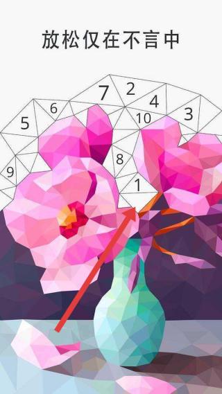 3、花卉关卡中,按数字顺序填色,放松创作,完成“放松仅在不言中”主题艺术画,解锁新内容。