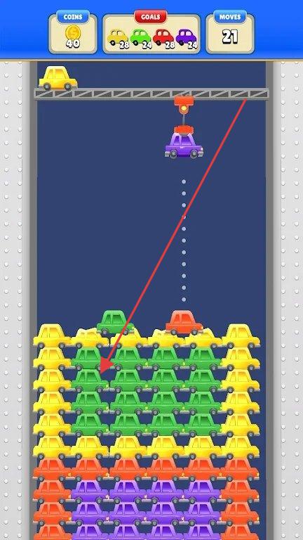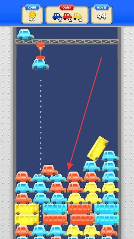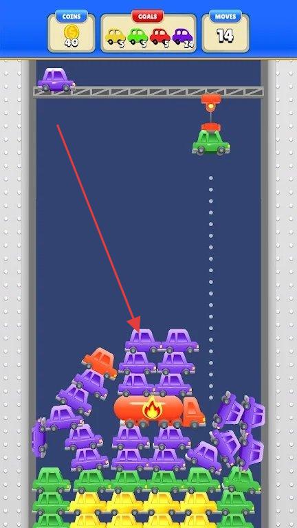 2、关卡推进,面对更多色、密集车辆,优先组合聚集同色车,成连锁爆炸,留意特殊车辆辅助清顽固堆积。