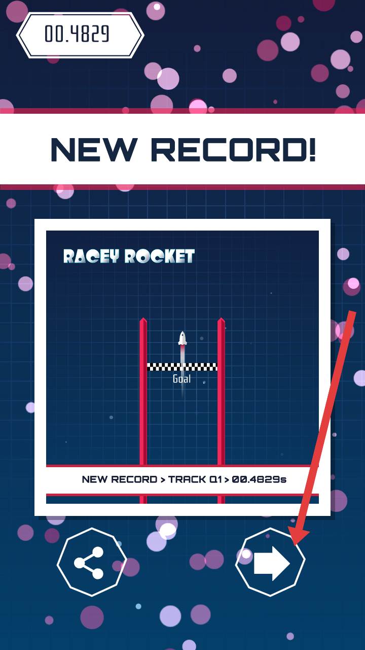 3、在弹射火箭关卡成功通关后,需要点击右下角箭头按钮,可以继续挑战这个新的关卡,刷新游戏记录。