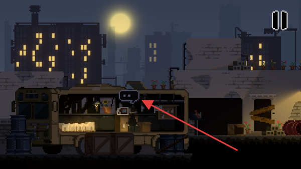 3、像素风游戏里的“夜晚城市废墟”场景,有改造的车辆等元素,是游戏中的探索或交互场景。