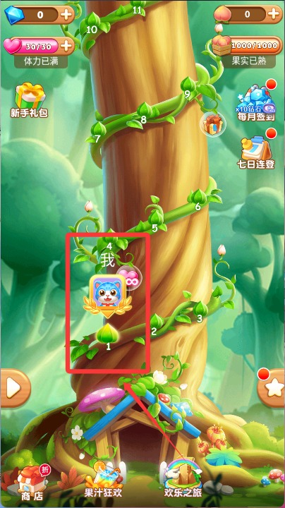 3、用收集到的果汁能量为欢乐树浇灌,帮助它成长并解锁新的关卡地图及挑战模式,每次成长都能获得额外消除道具。