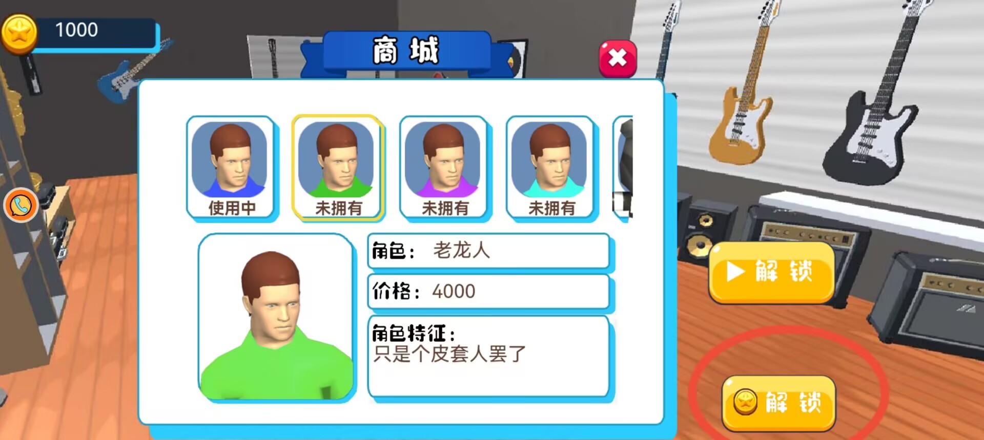 1、通过主界面商城入口进入角色购买页面,选择任意角色图标可查看详细属性与售价,界面右下角设有解锁功能按钮。