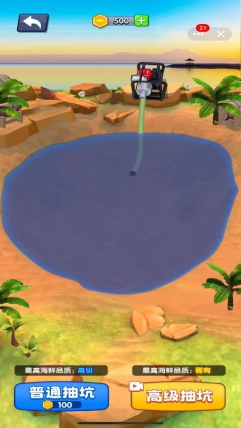 1、主要就是捡海鲜,潮退了赶紧去海滩。找准位置点屏幕,简单方便。大货要玩小游戏,考验手速。