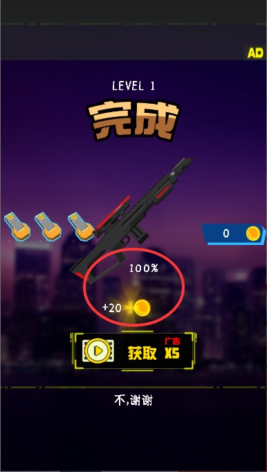 3、成功击败所有目标后画面会显示结算动画,金币奖励将累计至账户用于解锁新装备。