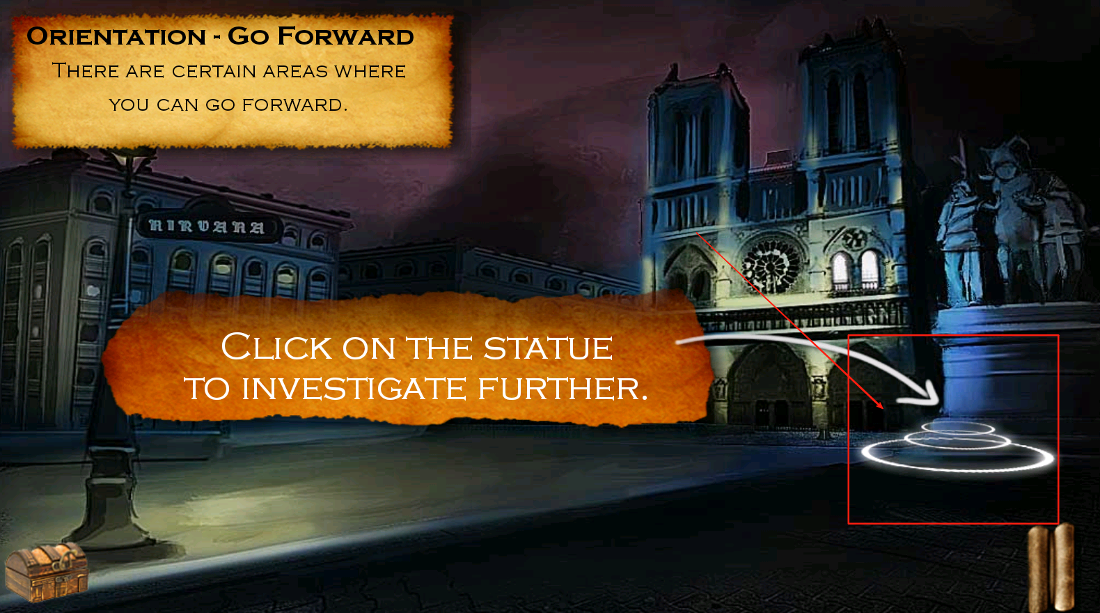 3、点雕像调查细节,宝箱现在开不了,看文字提示说可以往前走探索。