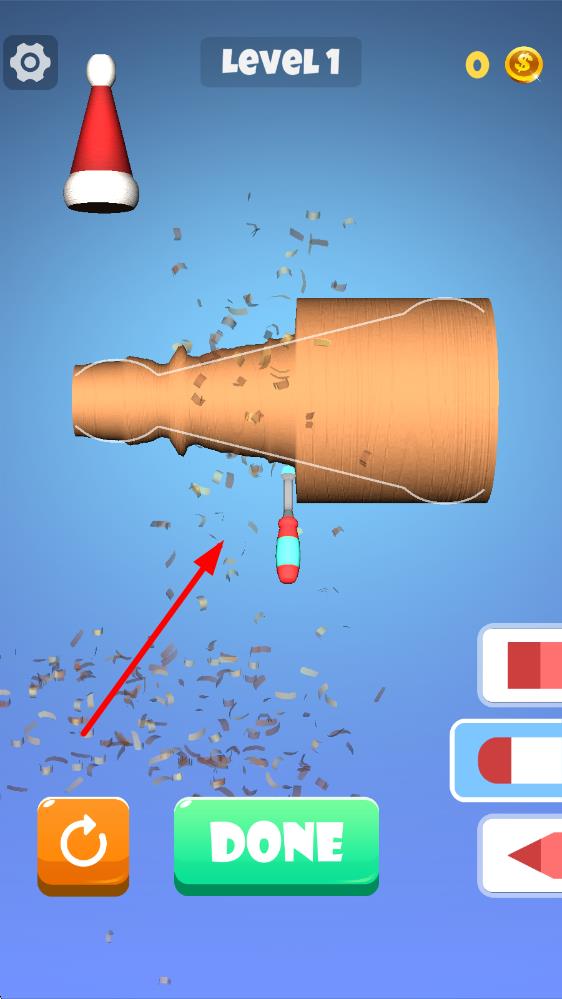 3、使用金币解锁更多高级木工工具,挑战难度递增的关卡任务,逐步掌握复杂造型的雕刻技巧与色彩搭配方法。