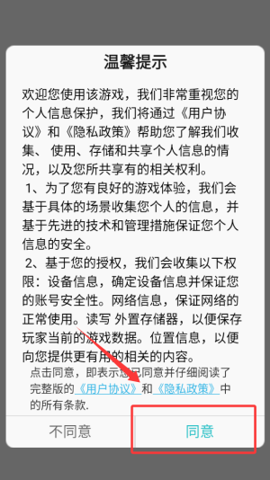 1、首次启动需阅读并确认用户协议条款,勾选同意选项后自动跳转至游戏主界面。