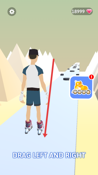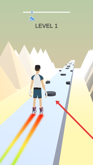1、初始界面按“DRAG-LEFT-AND-RIGHT”提示,左右滑动屏幕,控制轮滑角色,开始“LEVEL1”挑战。