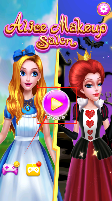 1、点粉色播放按钮开始游戏,看爱丽丝和红皇后比美,不想玩就退出。