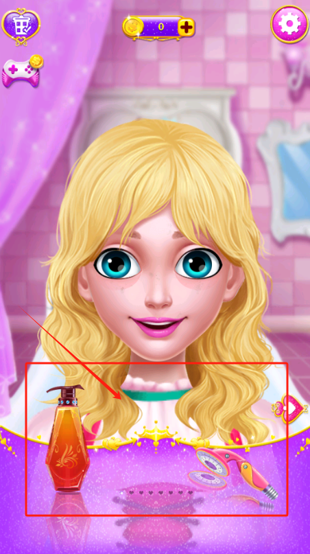 3、给金发女孩做发型,点红框的棕色护发素,H是帮助提示。