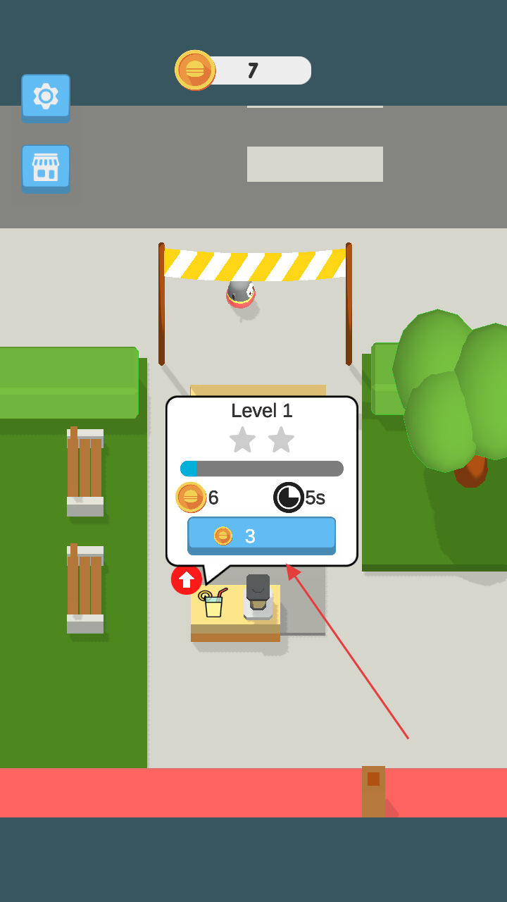 3、成功配送获金币,消耗金币点击升级按钮,提升关卡等级,拓展经营内容。