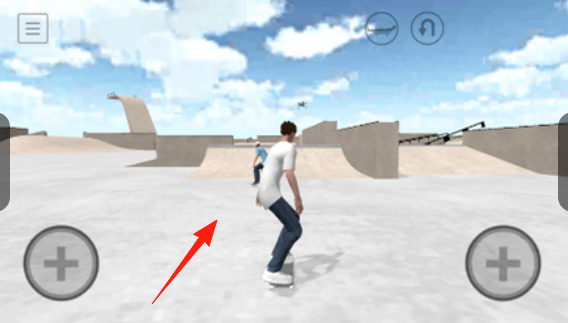1、场地滑行,按箭头指引,操控角色在滑板场移动,熟悉地形。