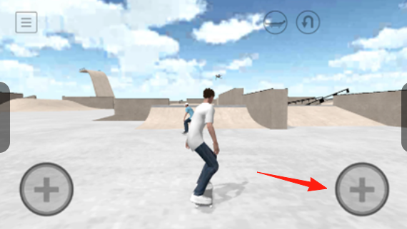 2、特技动作,接近坡道时,点击箭头指向的“+”键,触发跳跃、翻转等特技。
