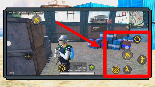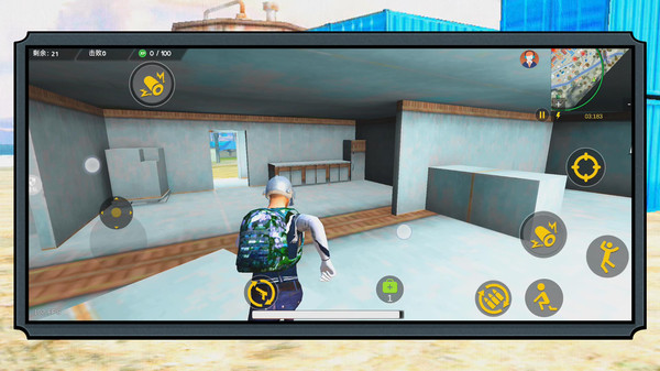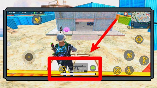2.游戏界面右下角显示操作按钮,玩家可以点击进行射击、切换武器等战斗操作。