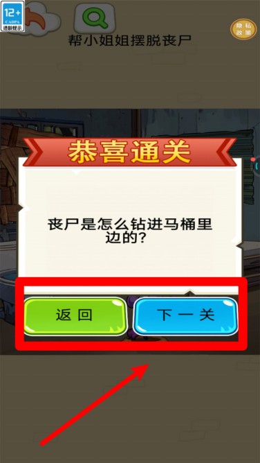 1.选择闯关按钮:玩家每通关一次,会看到弹窗提示可进入下一关卡,点选“下一关”即可继续挑战刺激的逃生冒险。
