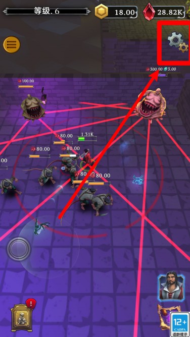 1.右上齿轮设定:点击右上角齿轮图标可打开系统设置界面,调整音效、画质或退出游戏操作,方便随时根据需求微调体验。