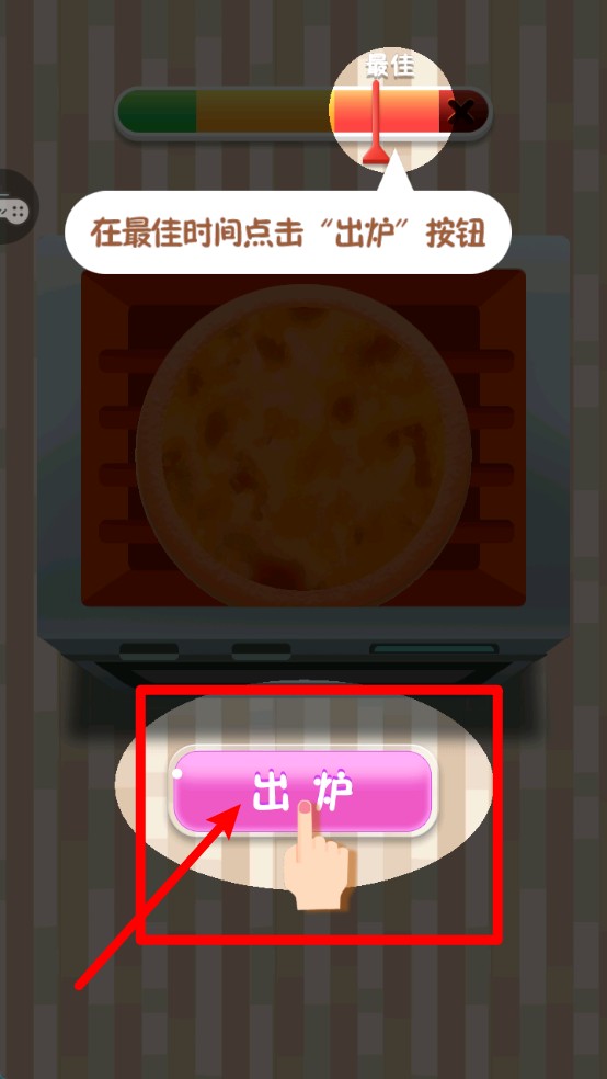 2.掌握出炉时机:当进度条进入红色“最佳”区域时点击“出炉”按钮,可以让披萨达到最佳状态,提升评价与收入。