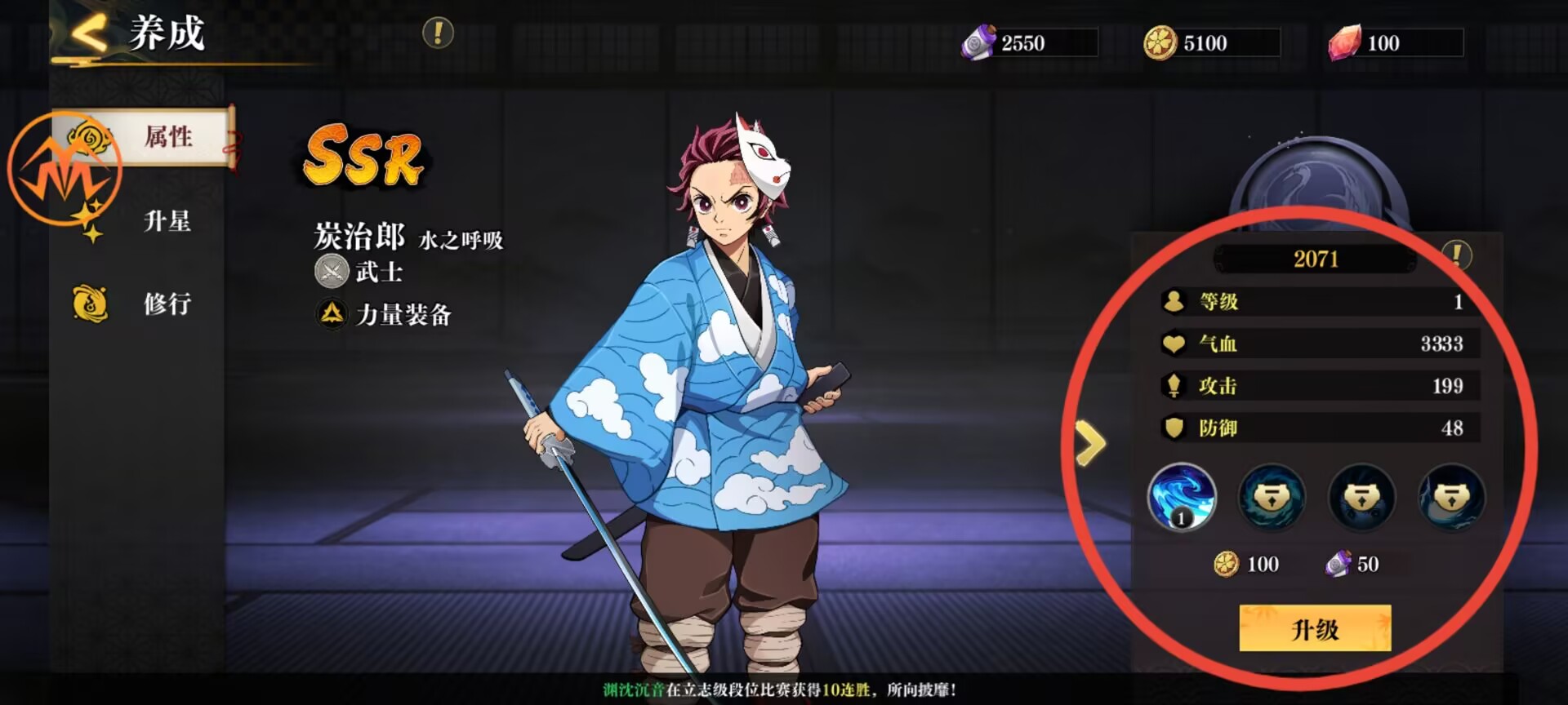 1、进入英雄界面选择养成选项,消耗金币与卷轴材料可提升角色等级,右侧面板会实时更新当前属性数值。