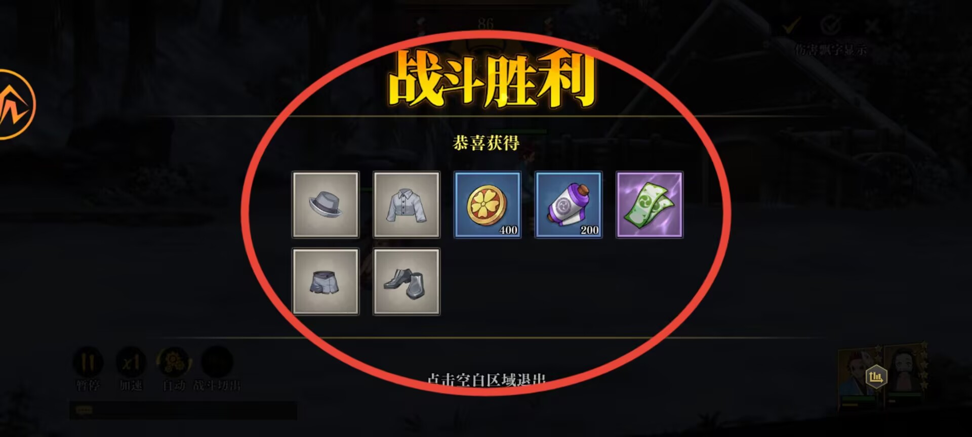 3、成功击败全部敌方单位后通关,结算界面将展示本次战斗获取的货币、道具及角色外观奖励。