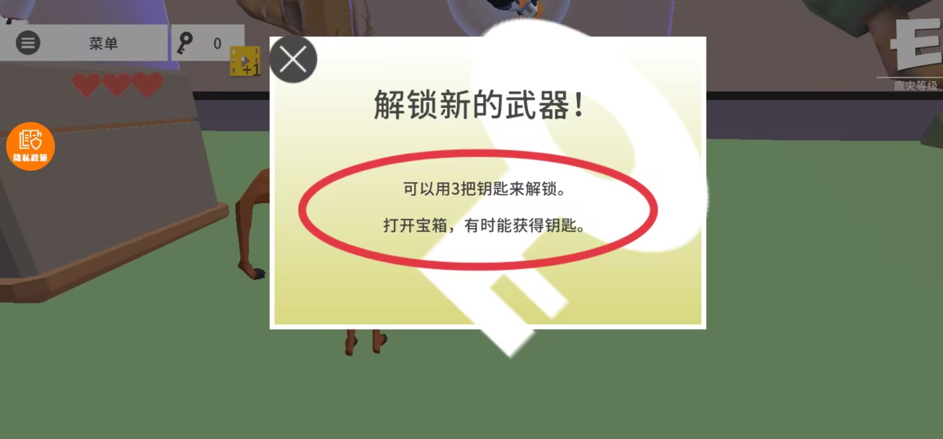 3、场景中散布可交互武器道具,接触后弹出解锁界面,消耗指定数量钥匙即可获得对应武器装备。