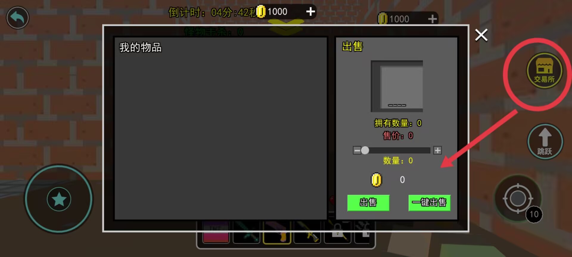 3、通过交易所功能可将收集道具转换为金币收益,支持单个出售或批量处理,右侧面板实时显示道具库存数量。